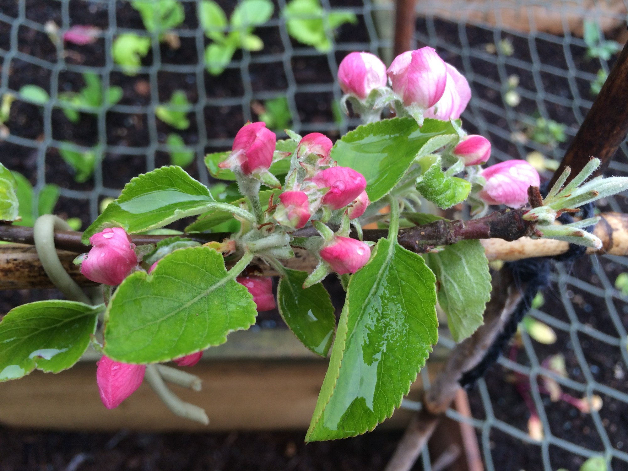 I could walk around the plot and do nothing but stare at miniature fruit and emerging shoots all day, but my to-do list for this month is as long as ever. Laying the wood-chip paths got rid of the longest-serving item on my to-do list but it also set me back in seed sowing and everything else by two to three weeks.