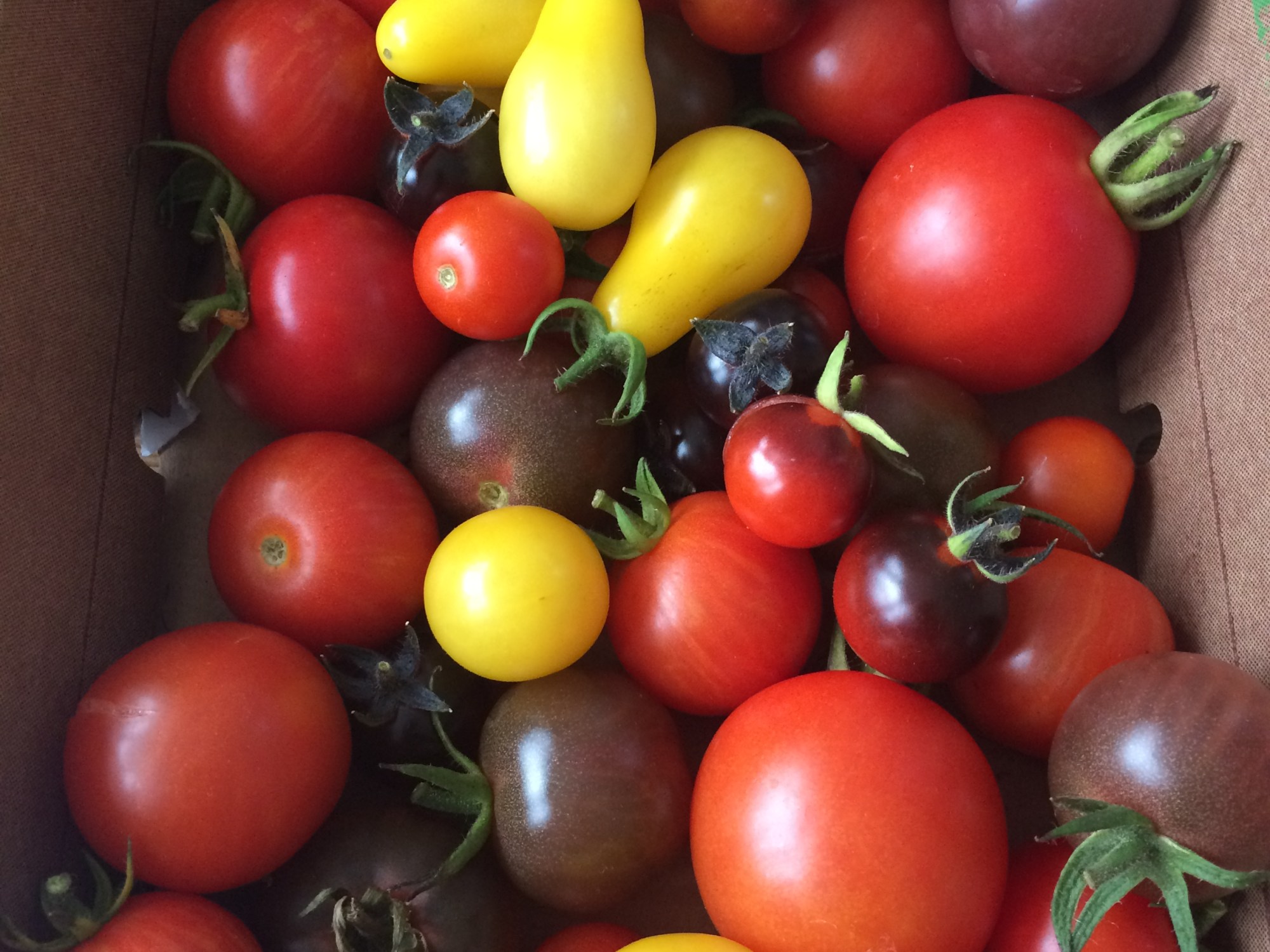 I sowed 20 varieties, half of them heritage, back in March. Around 60 plants germinated, but quite a few were cut down by the surprise late frost in May – the latest I’ve ever experienced in London. I ended up with a total of 36 tomato plants which are now in vigorous health. You can read about the varieties I’m growing in this post from earlier this year, but I’m most looking forward to Yellow Pear, Pink Brandywine and Indigo Blue Berries.